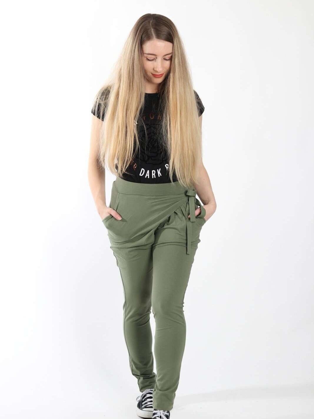 Ultimativen modni kos, ki ga obožujejo ženske različnih starosti. Zakaj? Zaradi njegove vsestranskosti in udobja. To so naše modne hlače na preklop, izdelane v Sloveniji. Ko jih boš imela v eni barvi si jih boš želela tudi v vseh ostalih! Hlače, ki jih lahko kombiniraš na fin ali pa bolj ‘’casual’’ način. Dodaj jim majico s kratkimi rokavi in usnjeno jakno in pripravljena boš za opravke po mestu, možnosti kombinacij je resnično ogromno. Hlače na preklop pa so na voljo tudi v dolžini 7/8, ki je popolna za pomladne dni.