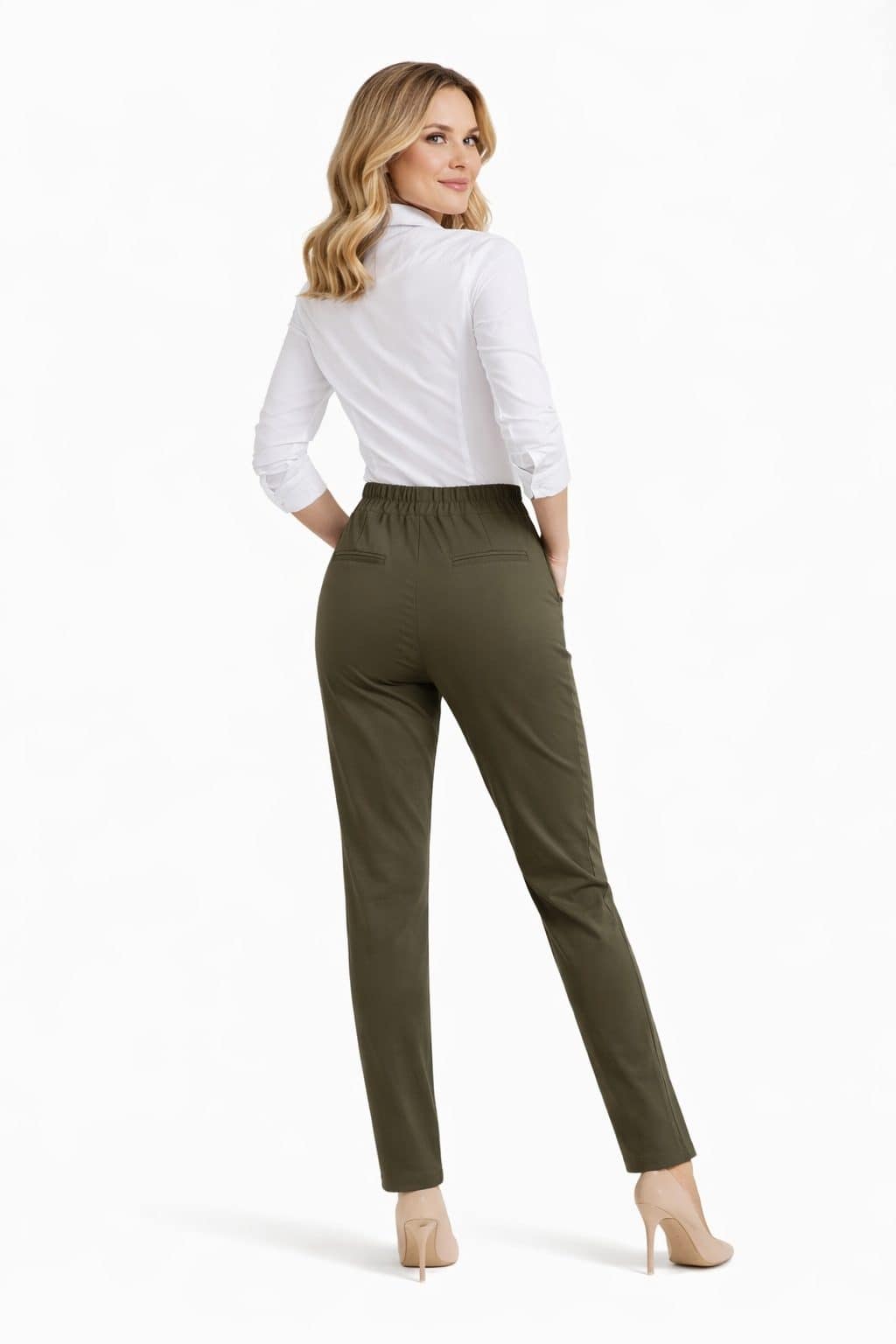 Kombinirajte jih z elegantno srajco in petami za prefinjen poslovni videz, ali z minimalističnim topom za moderen, urbani stil. Te hlače so popolna izbira za ženske, ki iščejo eleganco, udobje in brezčasen modni kos.