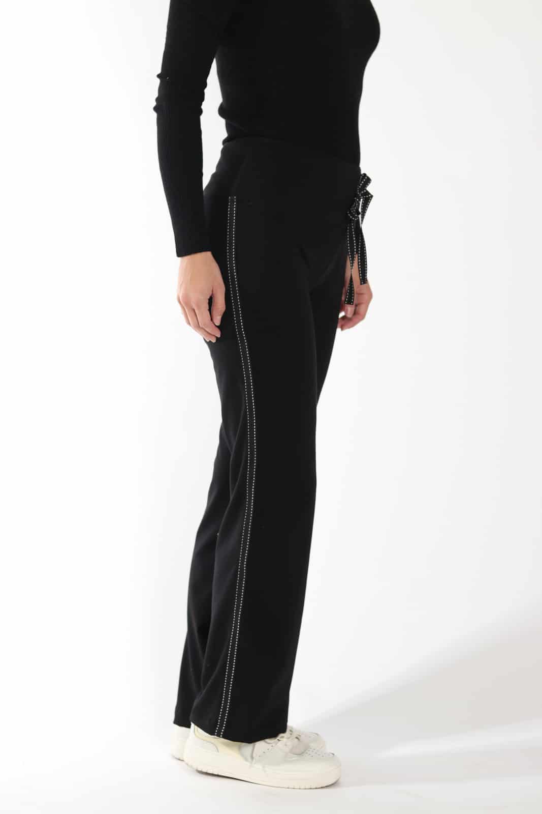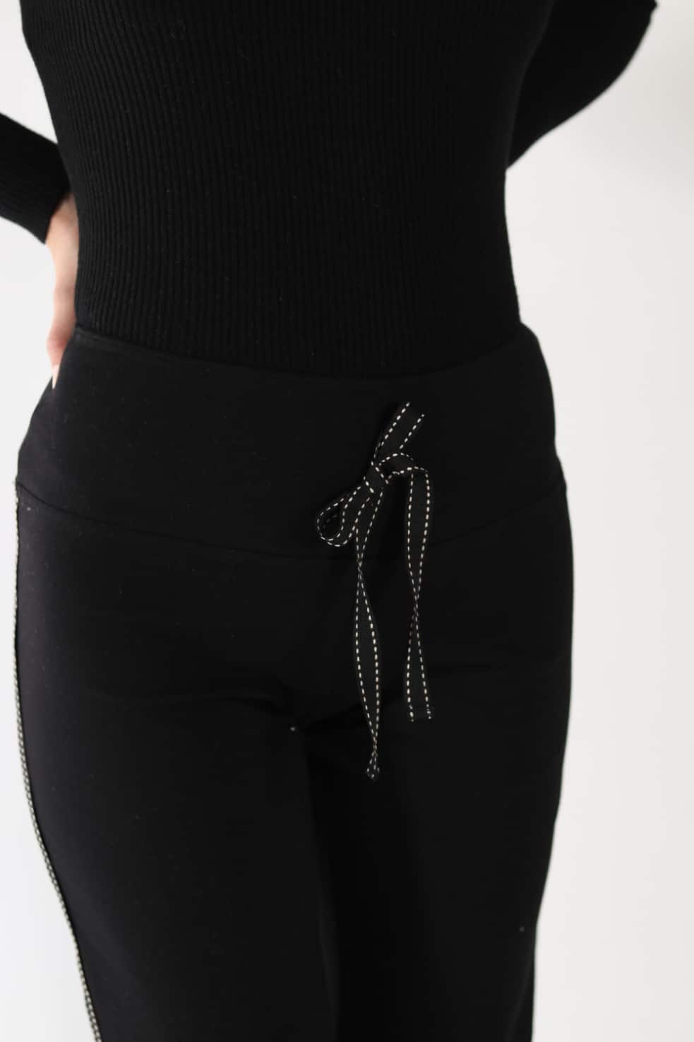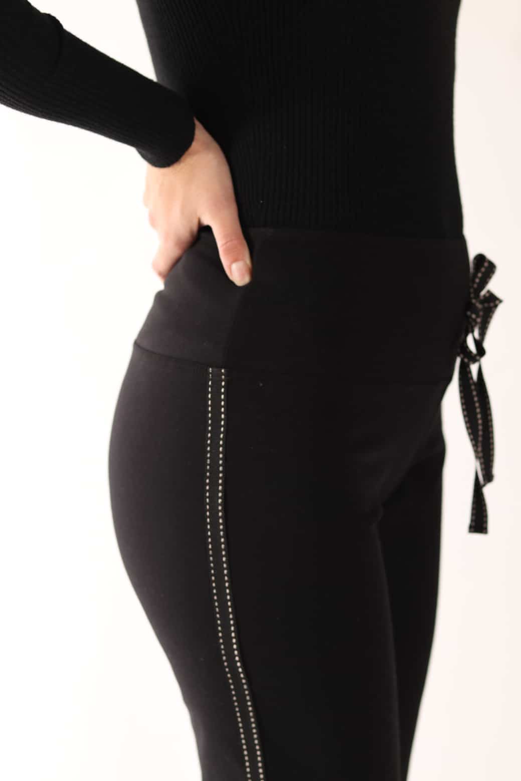 Modna in udobne hlače, izdelane iz kakovostnega bombaža. Hlače imajo višji pas, ob strani okrasni trak in ravno padejo.Hlače imajo na sredini okrasno vrvico, ki se zaveže na mašnjico. Hlače so izdelane v Sloveniji. Hlače lahko nosimo tako za boj fino, kot tudi za na sprehod ali kot trenirko, saj so izredno udobne. Hlače vam lahko popolnoma prilagodimo vašim meram, na voljo pa so v standardnih konfekcijskih števillkah – od 34 do 50.