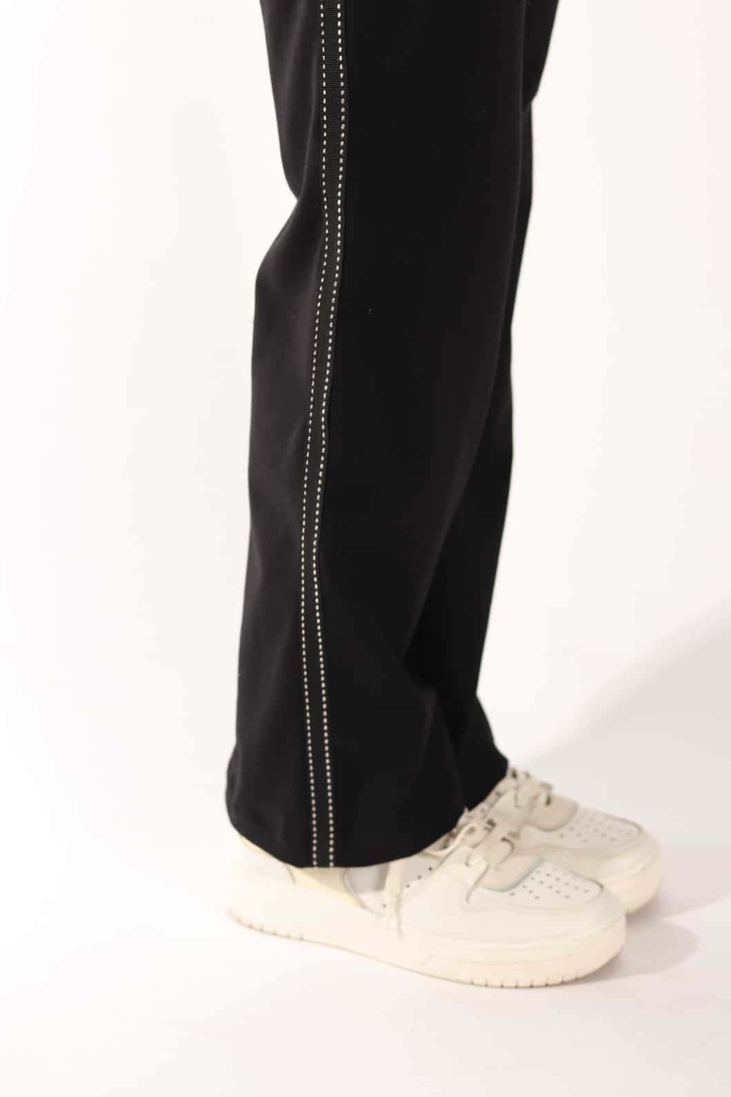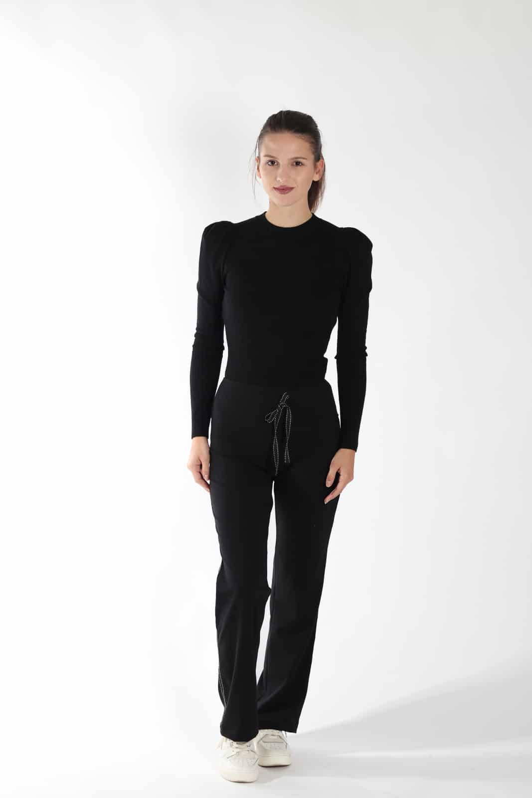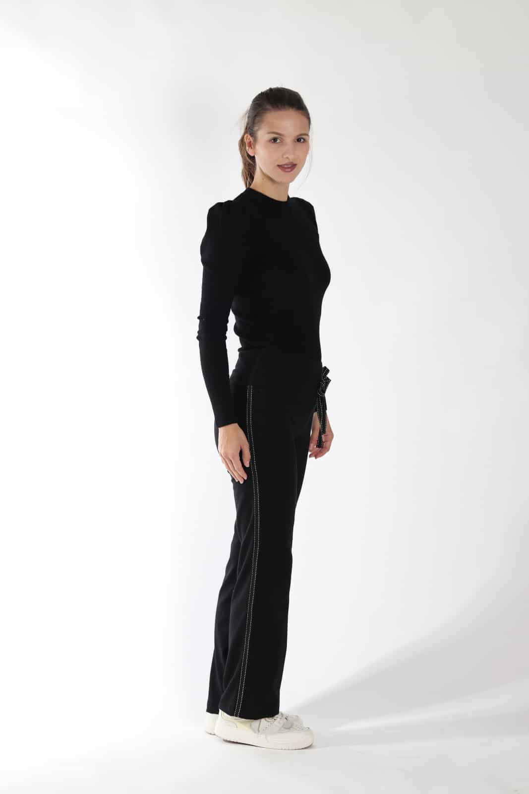 Modna in udobne hlače, izdelane iz kakovostnega bombaža. Hlače imajo višji pas, ob strani okrasni trak in ravno padejo.Hlače imajo na sredini okrasno vrvico, ki se zaveže na mašnjico. Hlače so izdelane v Sloveniji. Hlače lahko nosimo tako za boj fino, kot tudi za na sprehod ali kot trenirko, saj so izredno udobne. Hlače vam lahko popolnoma prilagodimo vašim meram, na voljo pa so v standardnih konfekcijskih števillkah – od 34 do 50.