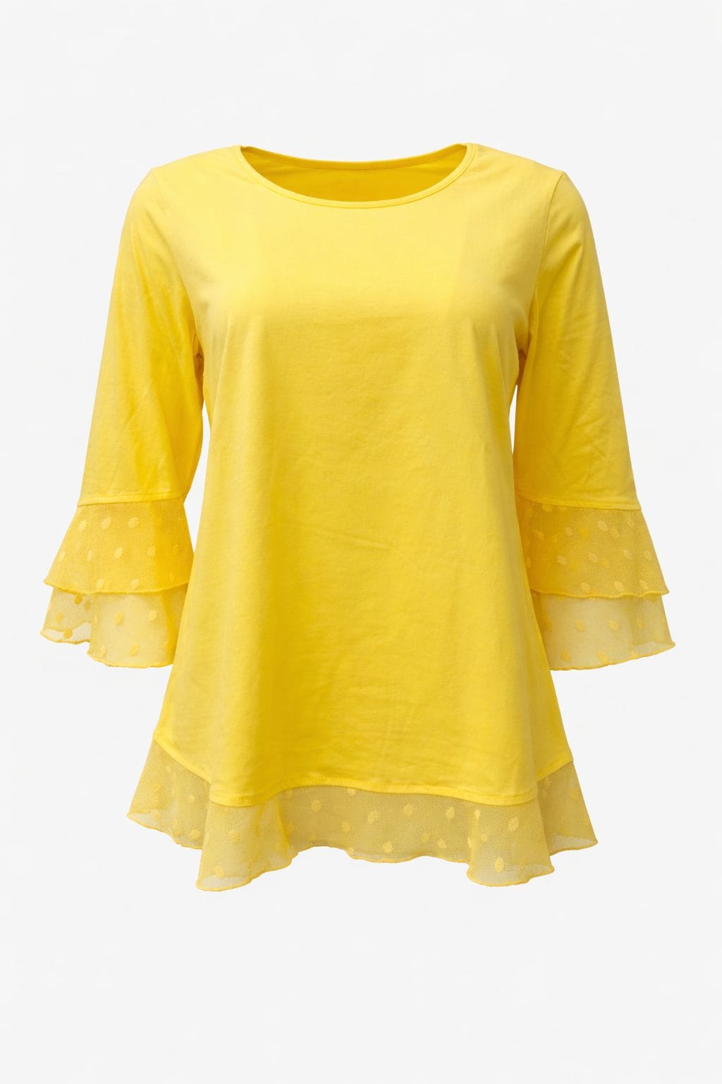 Dodaj svoji garderobi pridih elegance z našo žensko majico z volančki, ki združuje moderen dizajn in izjemno udobje. Ta elegantna majica za ženske izstopa s svojimi nežnimi prosojnimi detajli na rokavih in spodnjem robu, ki ustvarijo ženstven in sofisticiran videz.
