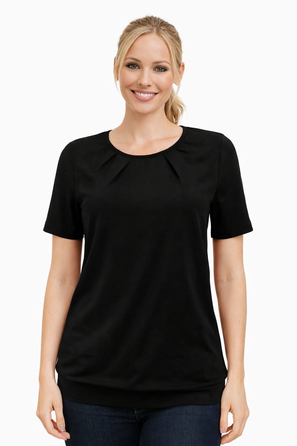 Modna viskozna majica EDITA je na voljo v temno modri,črni,marelici in barvi sivke. Majica ima spodaj patent. Majica je elegantna in primerna za različne priložnosti. Majica je na voljo od konfekcijske številke 36 do 50. Majica je narejena v Sloveniji.