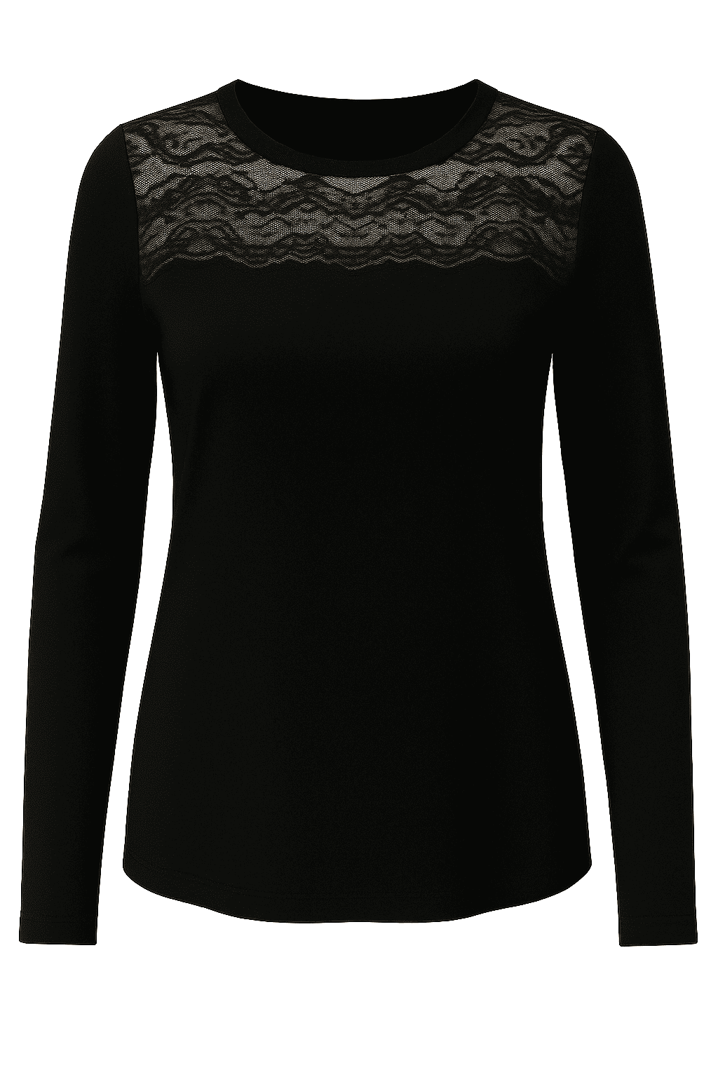 Bombažna majica z dodatkom prefinjene čipke. Majica ima okrogel izrez in dolge rokave. Majica je kombinirana s črnim in svetlo roza materialom, dodana ji je črna čipka. Majica je izdelana v Sloveniji in je na voljo do konfekcijske velikosit 50!