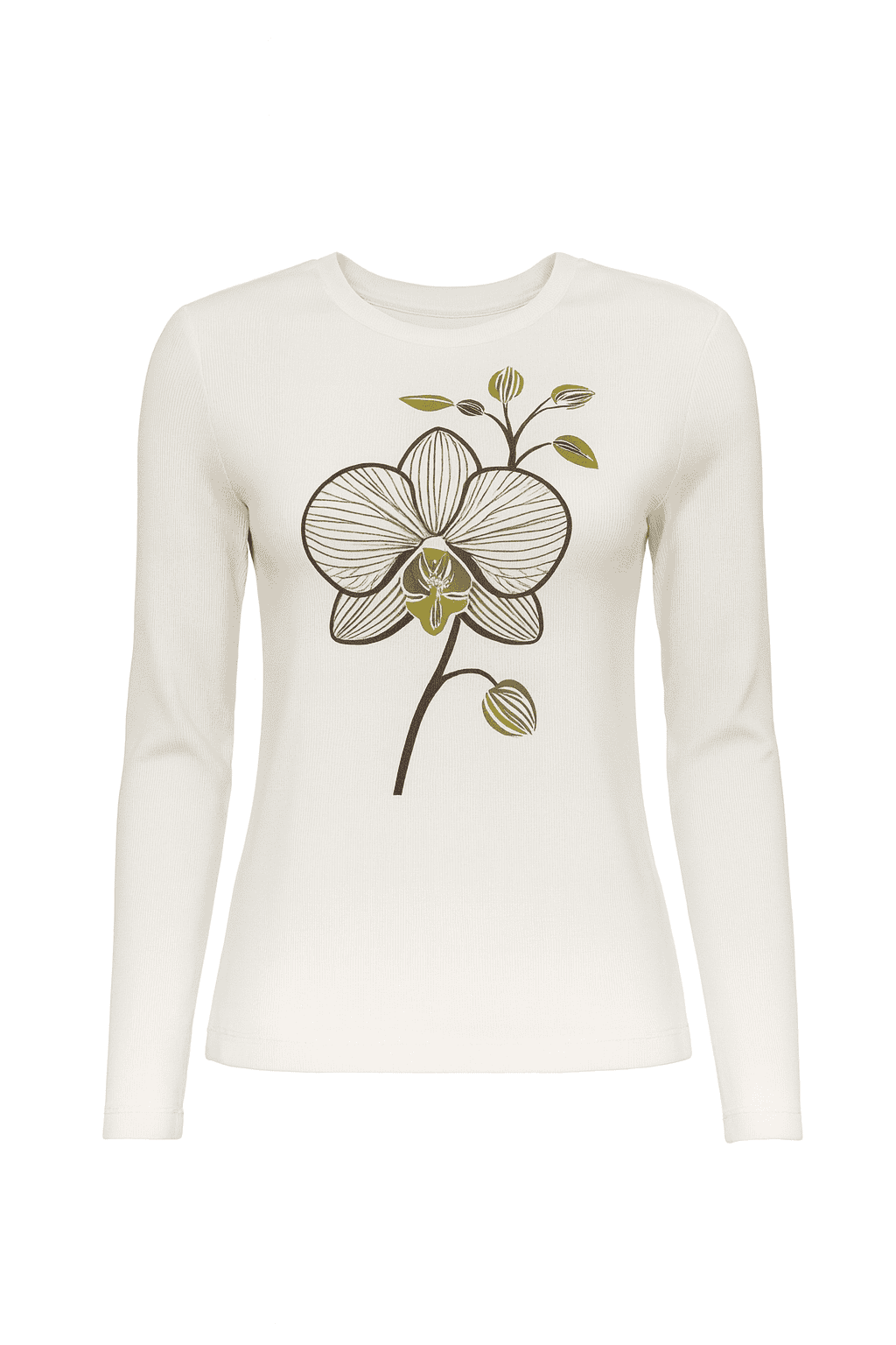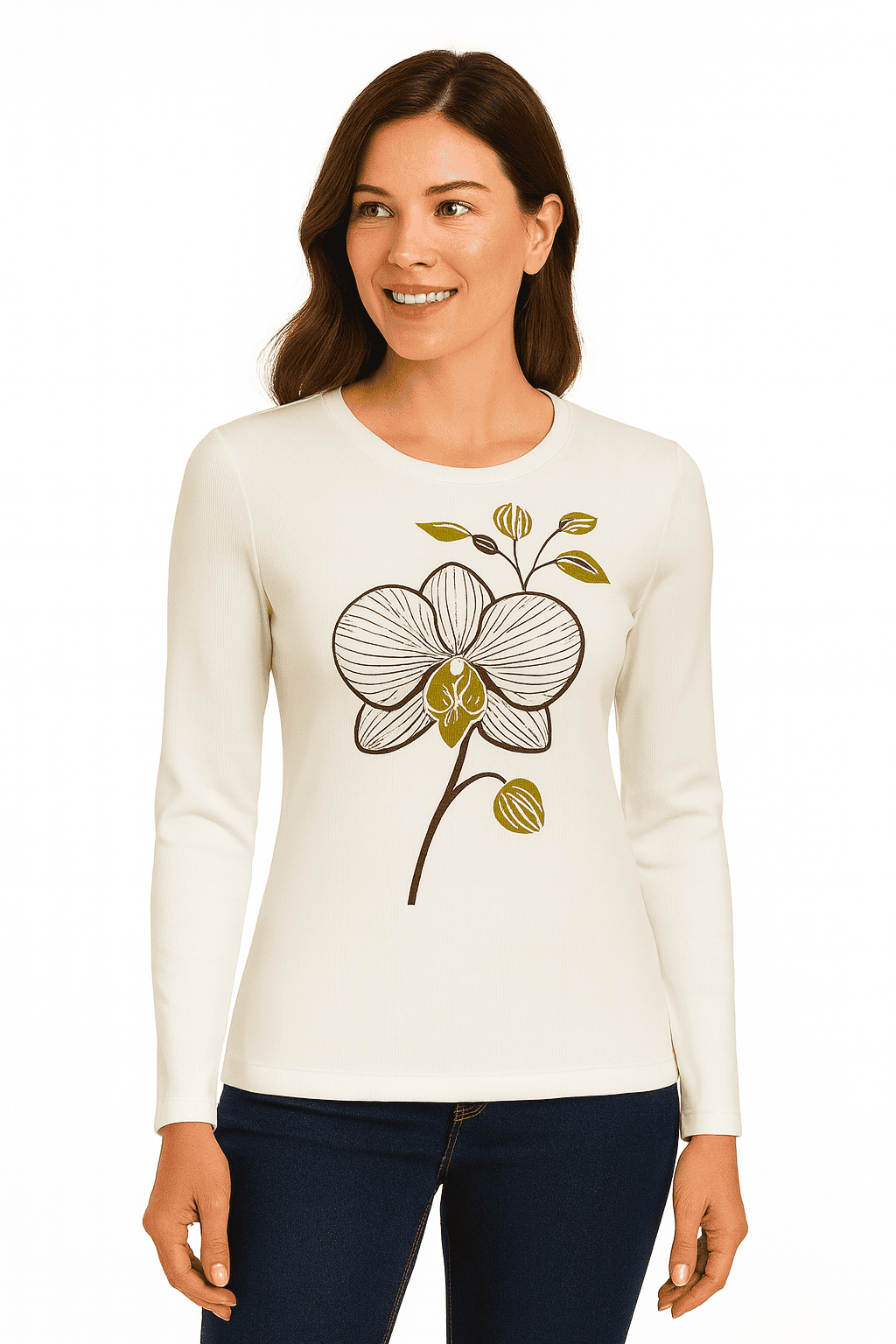 Ženska majica z dolgimi rokavi in orhidejo – 100% bombaž