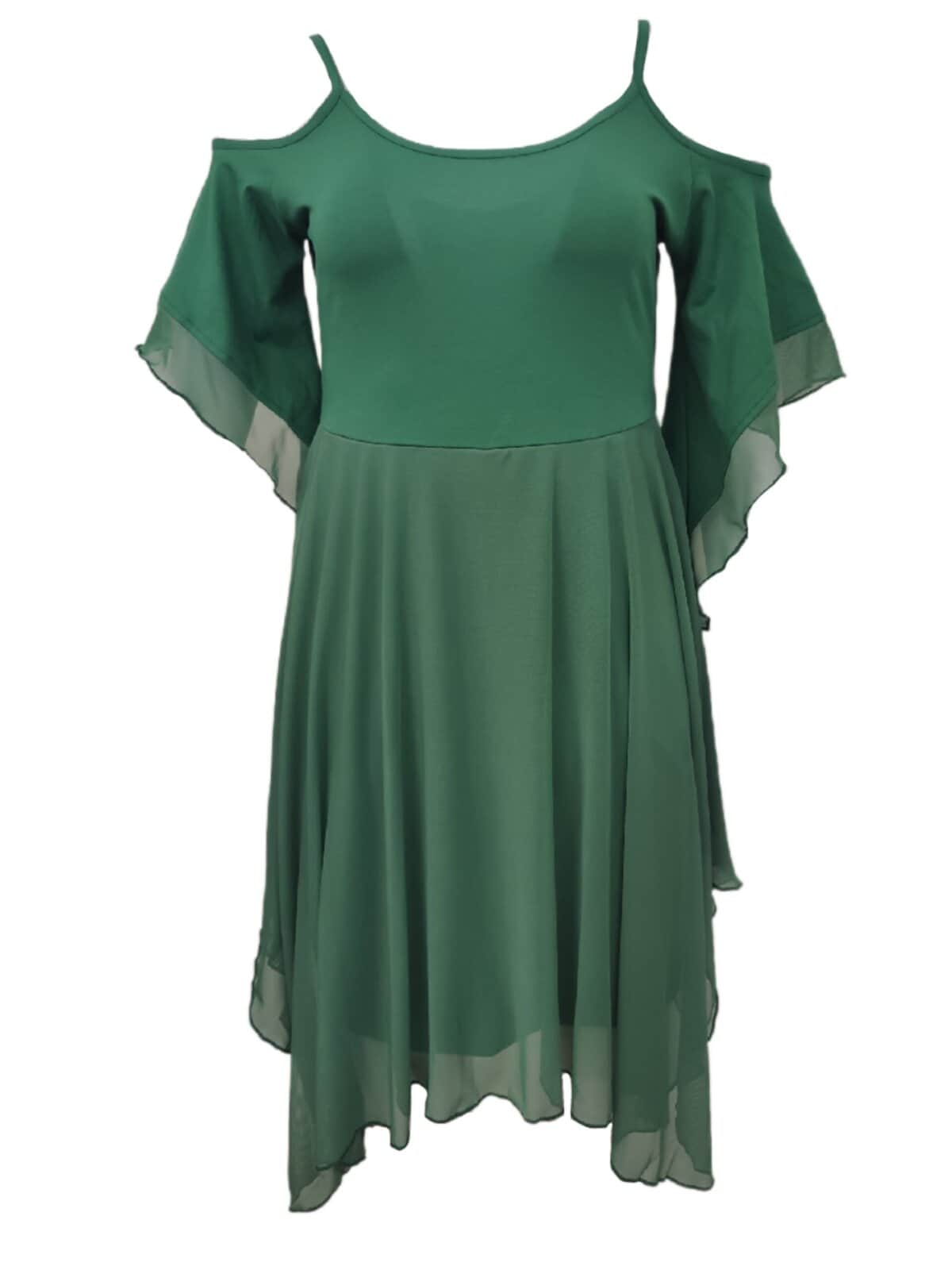 Čudovita bombažna obleka Suzana. Obleka ima odprta ramena in prosojne rokave. Obleka je zgoraj rahlo telirana, spodaj pa krojena na ven. Kroj obleke je manjši zato priporočamo nakup večje številke .Obleka je na voljo od konfekcijske velikosti 38 do 46. Obleka je izdelana v Sloveniji.