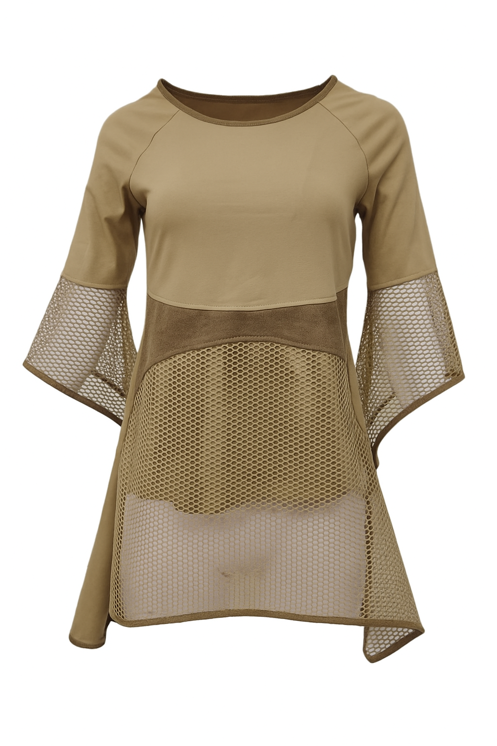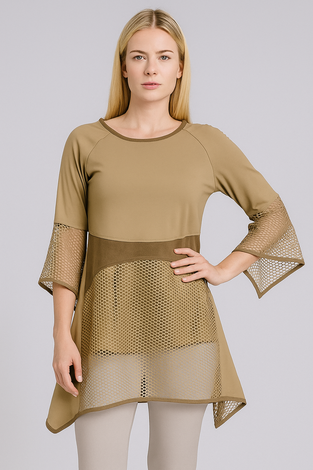 Viskozna tunika Evalda je na voljo v različnih barvah. Tunika ima 3/4 rokave, ki so delno narejeni iz mrežice.Tunika je krojena na ”A” in je primerna za elegatnejše priložnosti. Tunika je na voljo od konfekcijske velikosti 38 do 48. Tunika je izdelana v Sloveniji!