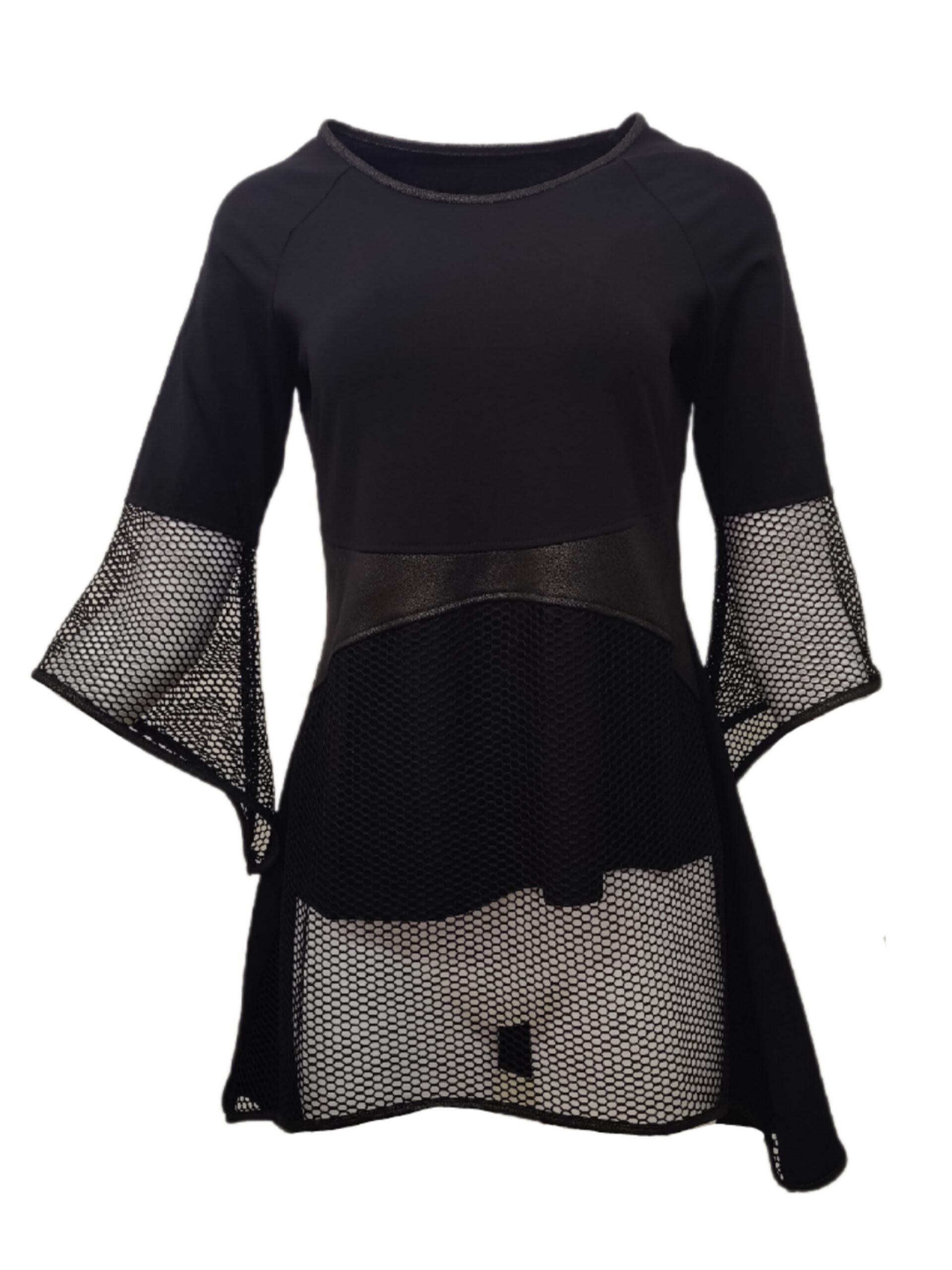 Viskozna tunika Evalda je na voljo v različnih barvah. Tunika ima 3/4 rokave, ki so delno narejeni iz mrežice.Tunika je krojena na ”A” in je primerna za elegatnejše priložnosti. Tunika je na voljo od konfekcijske velikosti 38 do 48. Tunika je izdelana v Sloveniji!